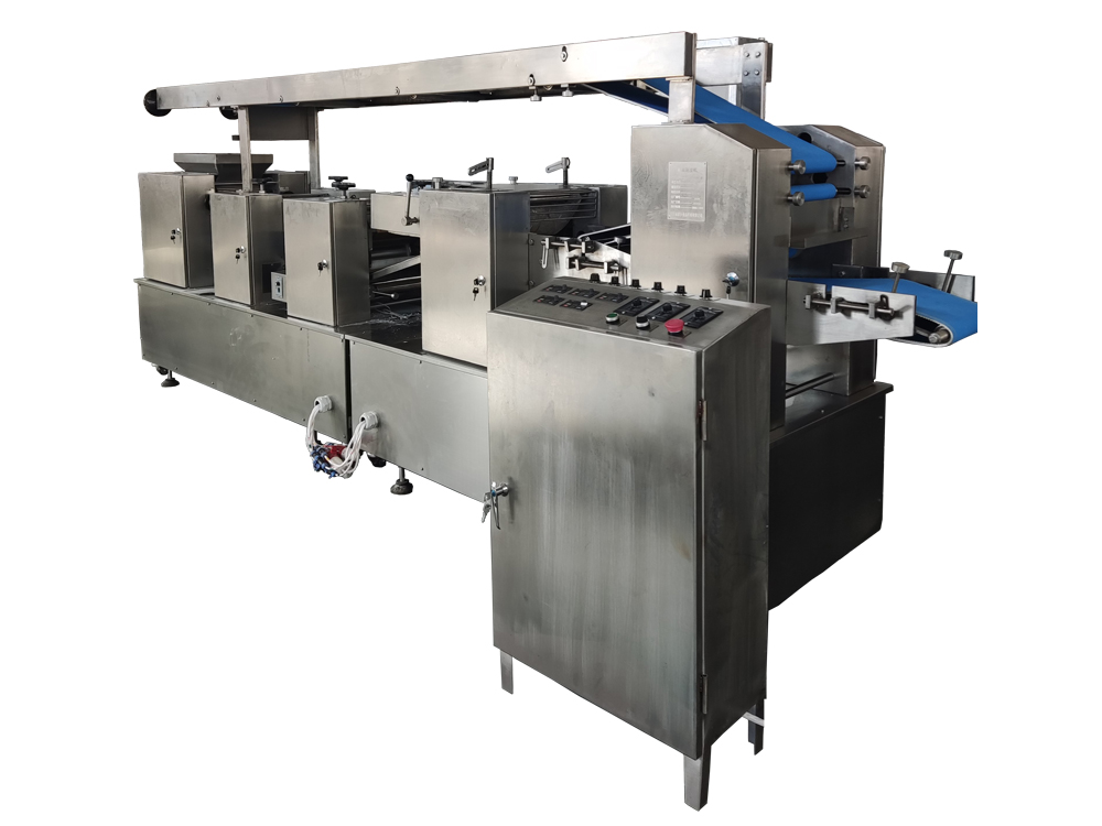 制皮機為臥式成型機,通過傳送機構(gòu)將各道軋輥線速度比合理分配,實現(xiàn)從投料到制皮成型自動化生產(chǎn)。適用于餃子皮、餛飩皮、燒麥皮、蒸餃皮、以及燙面類面皮成型。